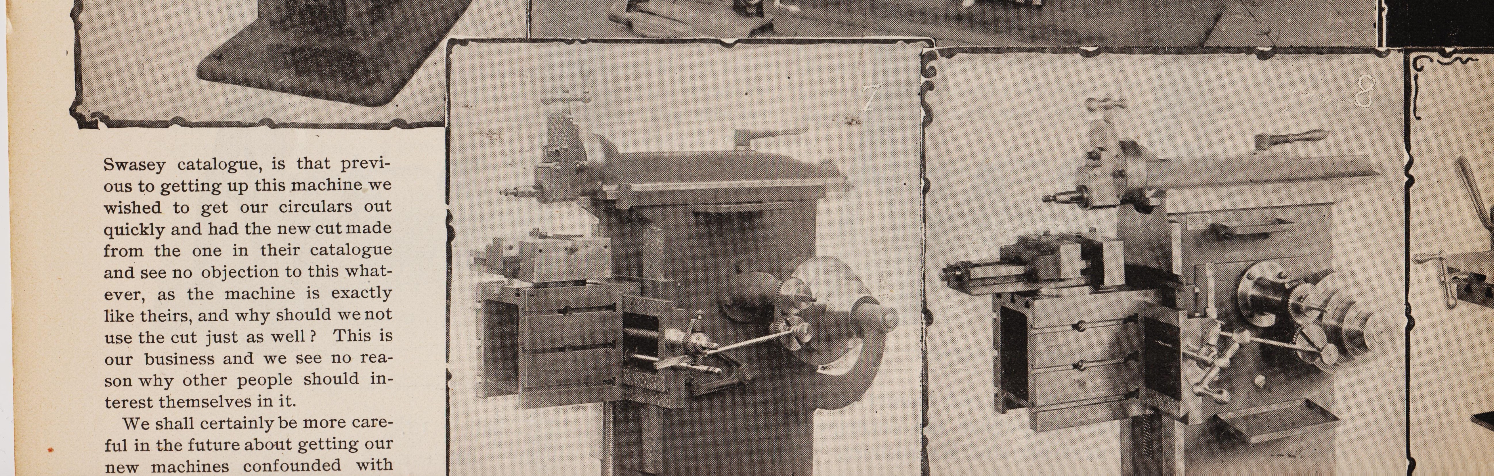 Swasey catalogue, is that previ-ous to getting up this machine we wished to get our circulars out quickly