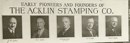 produced a wide variety of stampings for a large number of companies. At one point, the Ohio Gas Company asked Acklin Stamping to create a
