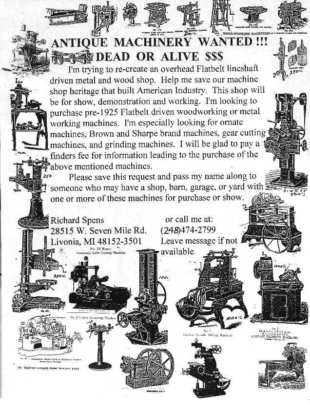 Antique Machine shop &Woodshop Machinery & Parts, Bought, Traded, by Richard Spens