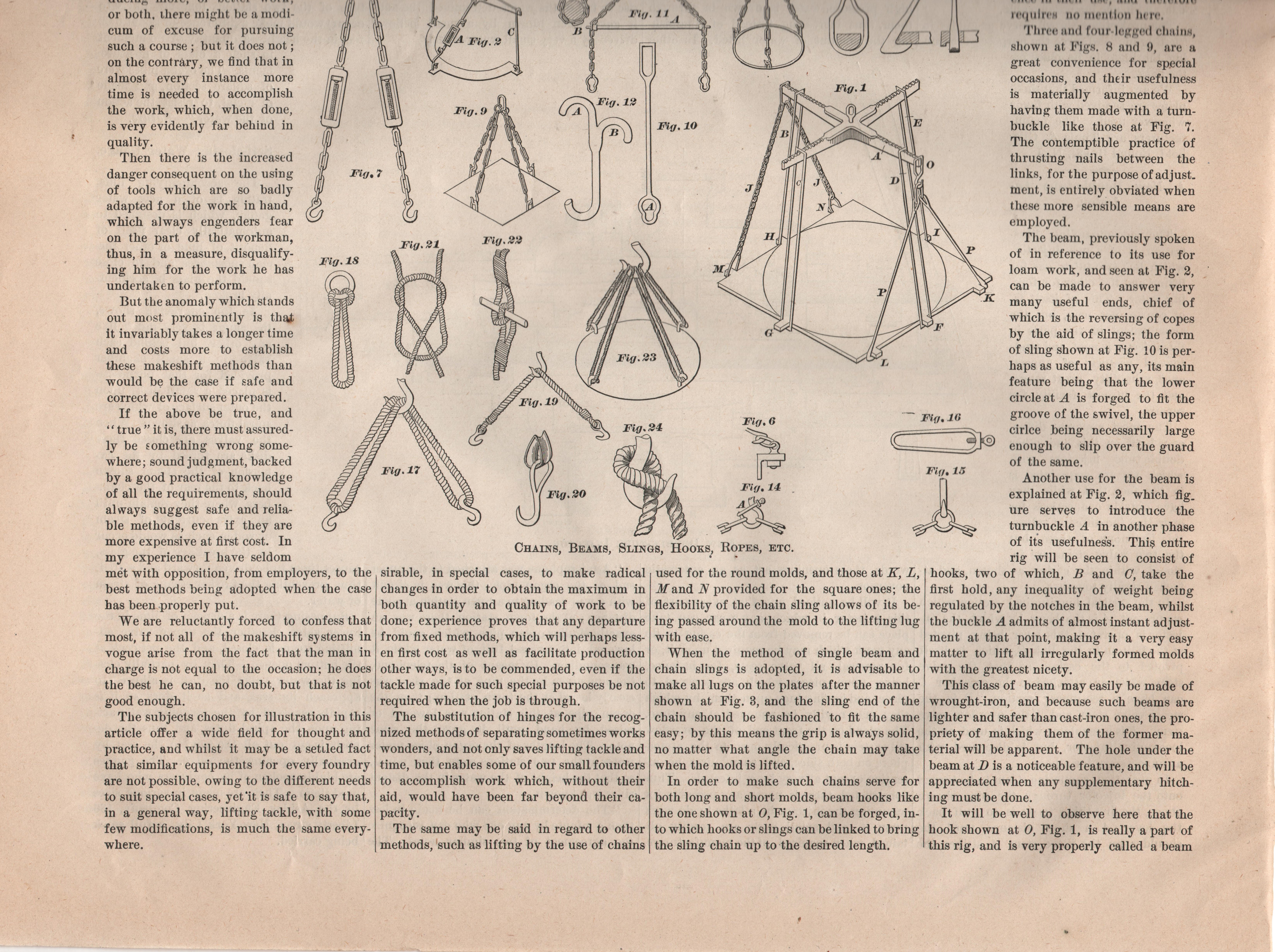 Chains, Beams, Slings, Hooks, Ropes, Etc., for Lifting and Handling All Classes of Work in the Foundry.