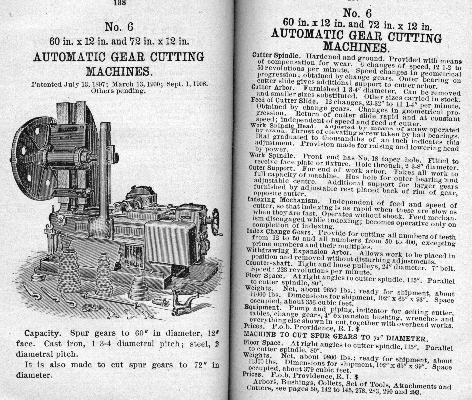 Cycle Gas Engines; The Hilles & Jones Co. of Wilmington, Del. manuf'r of Machine Tools; Bement, Miles & Co. of Phil., Pa. manuf'r of Metal-Working Mach. Tools; William Sellers & Co. of Phil., Pa.