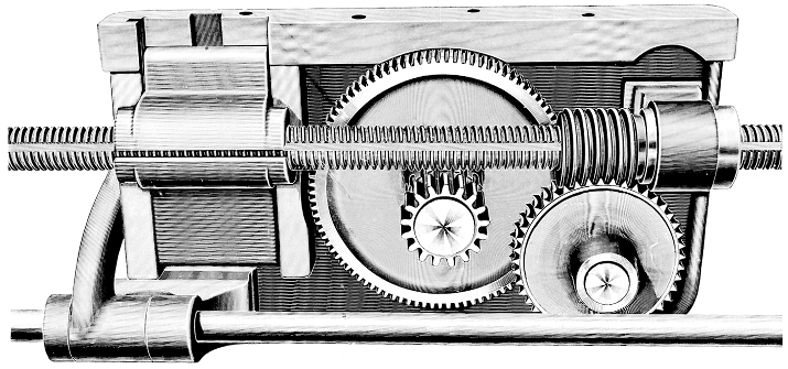 the table-feed mechanism, a fitting that provided the operator with a vast range of feeds, all easily and
