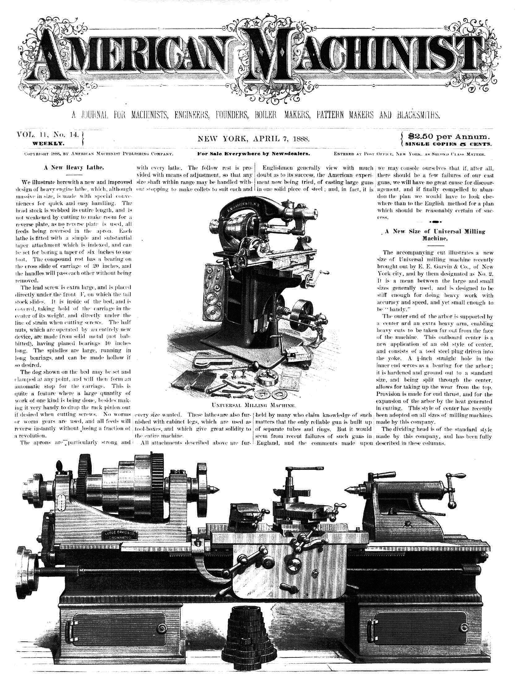 American Machinist Mag. 1888, read to experience life in a high technology (for